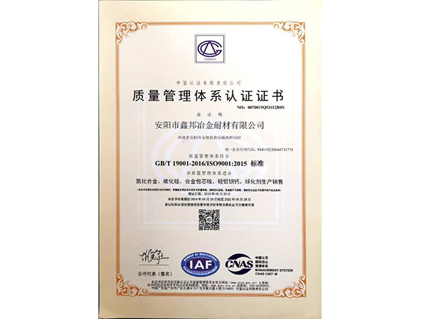 質(zhì)量管理體系認(rèn)證證書